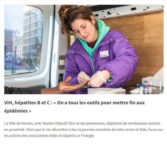 Contribuer à atteindre l’objectif de l’élimination de l’hépatite C à l’horizon 2030 dans le monde et renforcer l’action sur le territoire communal pour l’hépatite B et le VIH : c'est l'objectif du réseau Fast Track Cities, dont fait partie la ville de Nantes. Celle-ci a développé un projet pour réunir les acteurs de la santé sexuelle et reproductive, de l’addictologie, de l’hôpital et de l’hébergement pour proposer des actions d’aller-vers et coordonner les parcours de soin. Pour en savoir plus, nous avons rencontré Hortense Bernard, chargée de mission à l'association Nantes objectif zéro.